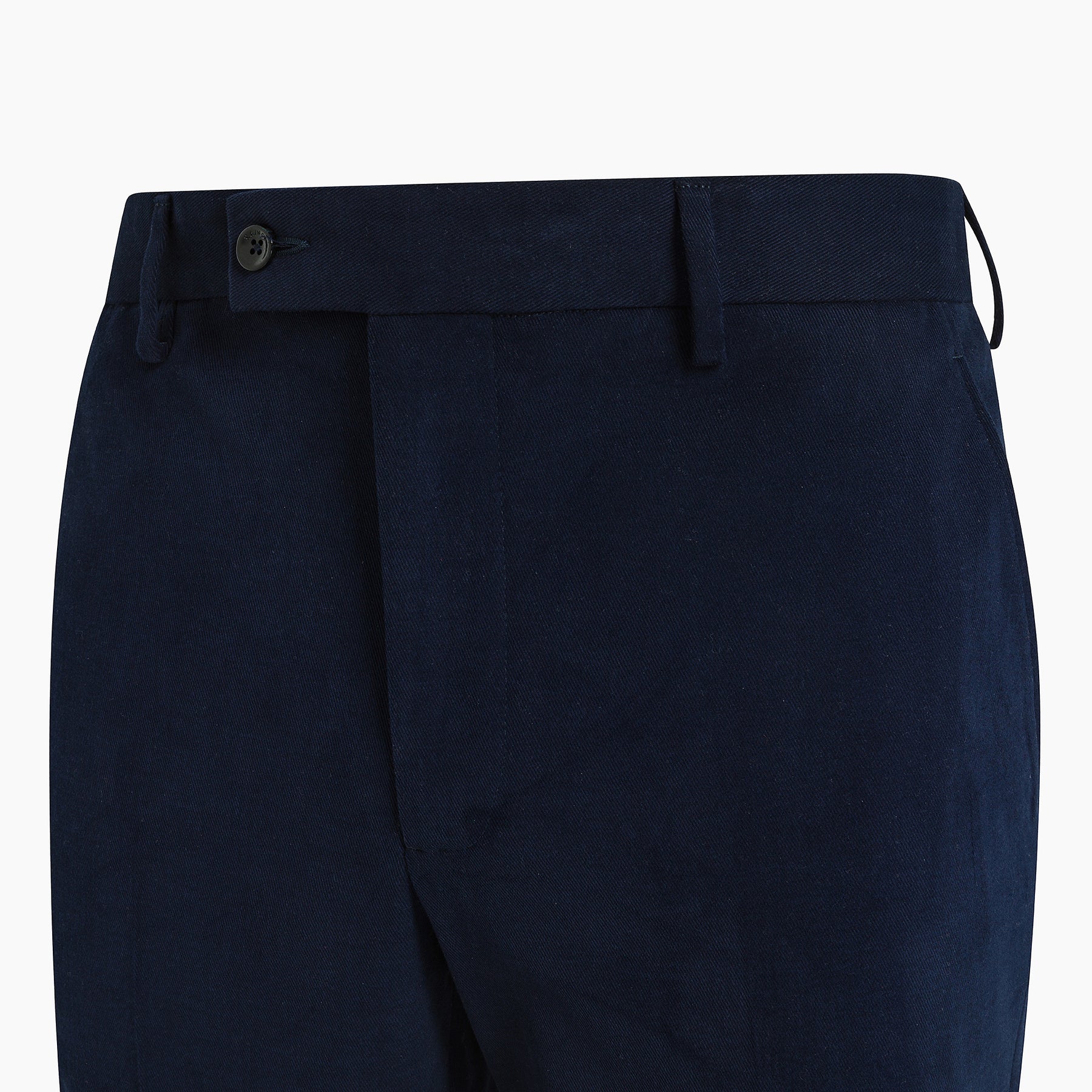 Featuring diagonal American-style front pockets, buttoned double-welt back pockets, and a neatly pressed crease with an invisible hem stitch, they offer a refined regular Italian fit.